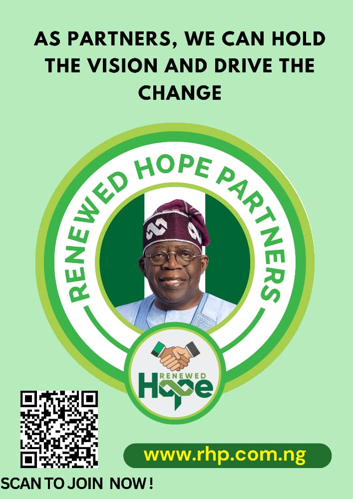 Renewed Hope Partners (RHP) is a grassroots-driven movement mobilizing 60 million+ Nigerians to participate in President Tinubu’s Renewed Hope Agenda through structured engagement, access to programs, and civic action.